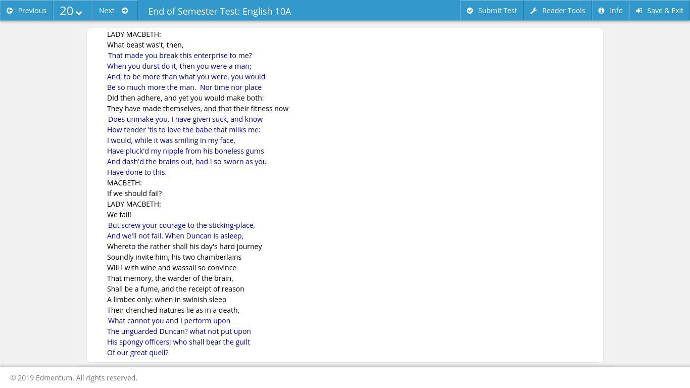 Lady Macbeth is among Shakespeare's most powerful female characters. Which two sections in this excerpt from Macbeth show that s