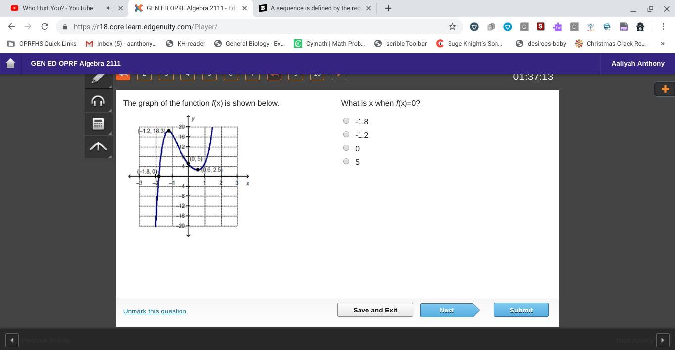 Upon looking at our given graph, we can see that our function has only one x-intercept that is at point