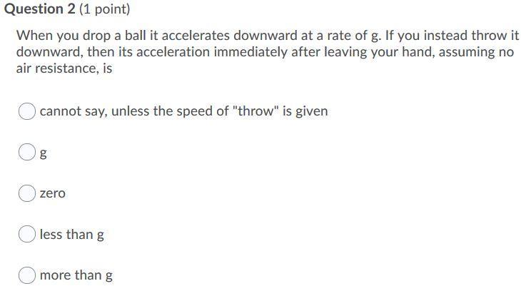 When you drop a ball it accelerates downward at a rate of g. If you instead throw it downward, then its acceleration immediately