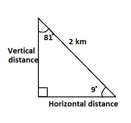 Viola drives 2 kilometers up a hill that makes an angle of 9 with the horizontal.