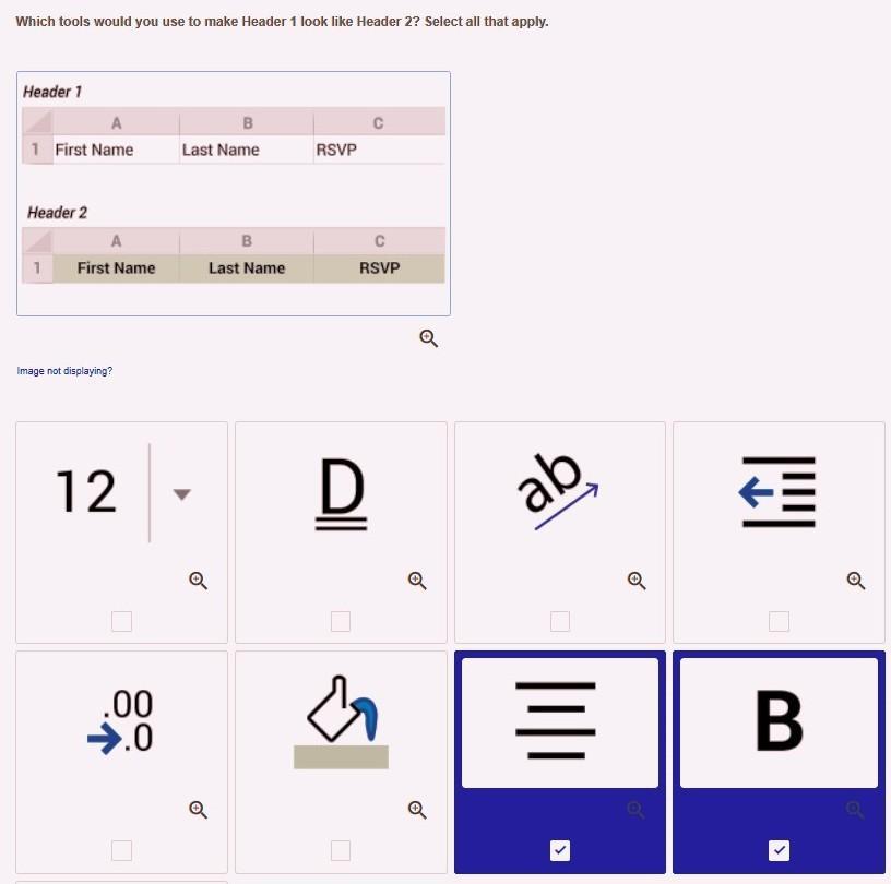 As a Microsoft software, Microsoft Excel can also be used to edit sheets. In the image attached, the required tool icons needed to change the header 1 into header 2 is the alignment tool icon and the Bold tool icon.