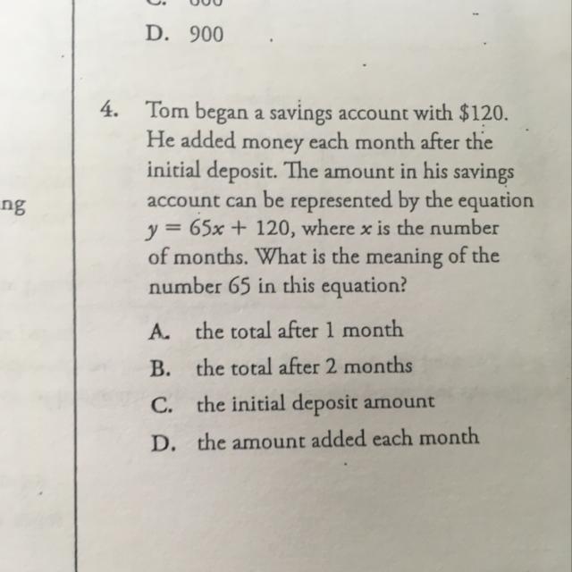 If our total is 65x+120 where x is the number of months, that means each additional month we add $65.