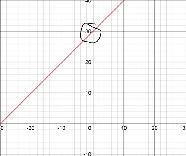 This equation is in the form y = mx + b, where m is the slope and b is the y-intercept (the place where the line crosses the y-axis). Here, 30 is the y-intercept. See first attachment.