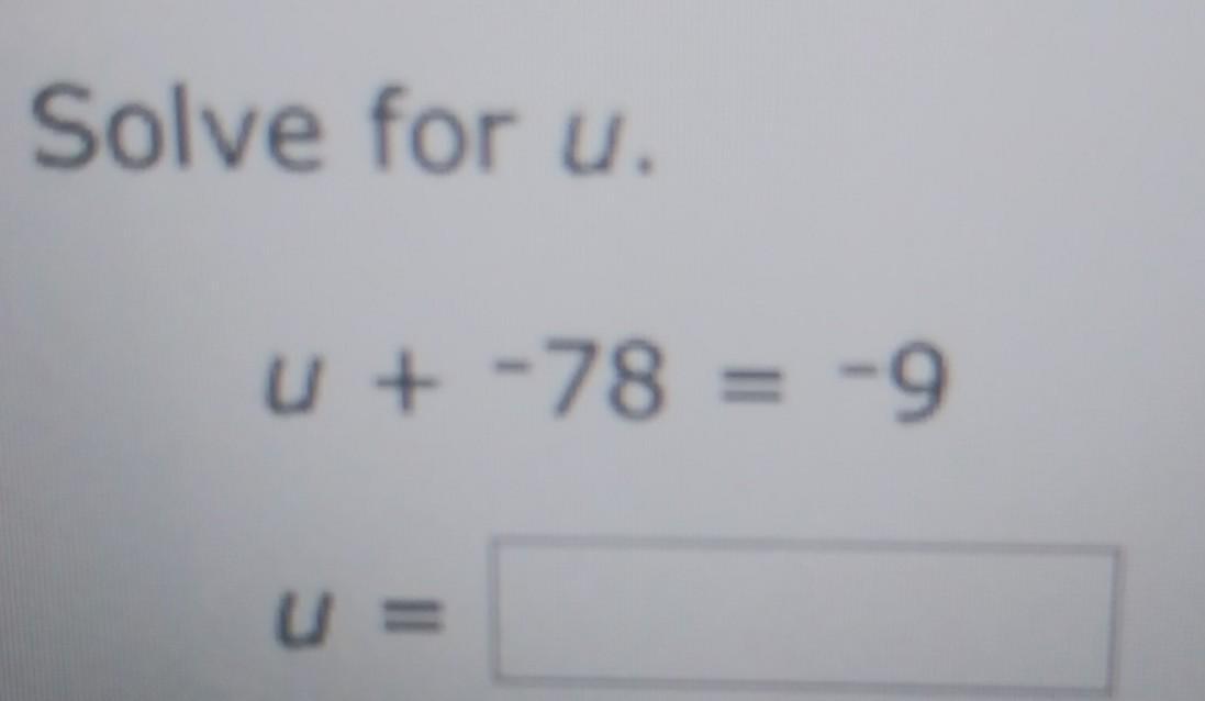 u + -78 = -9