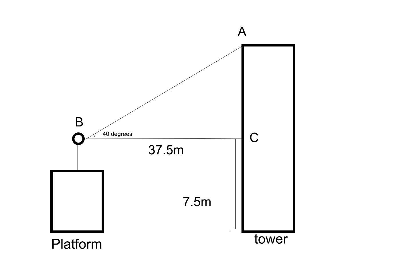AC = 37.5 X tan 40 = 31.46m