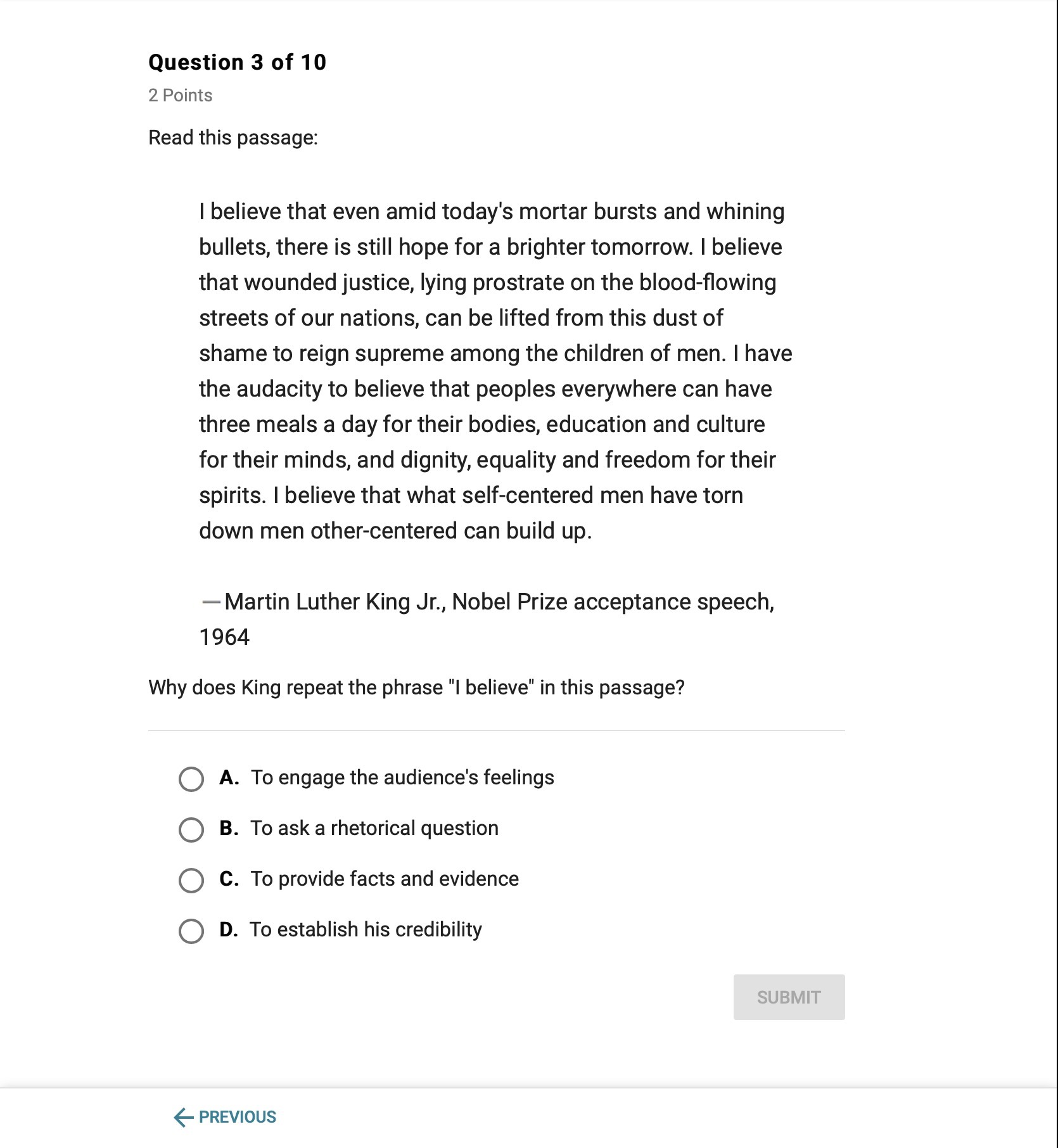Answer:As a theologian, Martin Luther King reflected often on his understanding of ... “True pacifism,” or “nonviolent resistance,” King wrote, is “a courageous ... King did not experience the power of nonviolent direct action first-hand until the ... During the years after the bus boycott, King grew increasingly committed to nonviolenceIn his cover letter to editor Harold Fey, King noted that “it has just been within the last ... Drawing from his many speeches on the topic, King provides here a concise summary of his views regarding nonviolent resistance to segregation. ... After his emancipation in 1863, the Negro still confronted oppression and inequality.