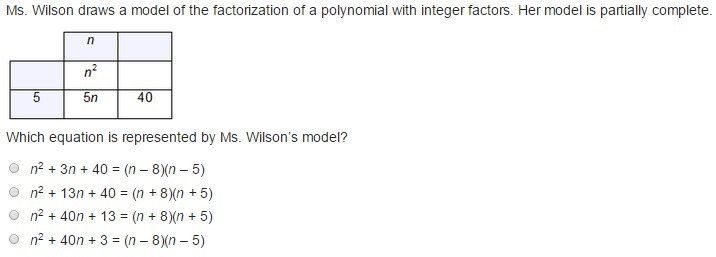 Ms. Wilson draws a model of the factorization of a polynomial with integer factors. Her model is partially complete.