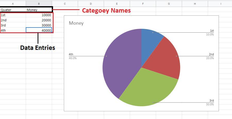 In this example, the <em>quarter</em> and <em>money</em> heading are category names and corresponding data in these columns are data entries.