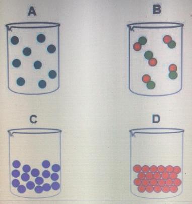 We can discard the options C and D as C shows a the characteristics of a liquid (fixed volume) while D shows the characteristics of a solid (fixed shape and volume)