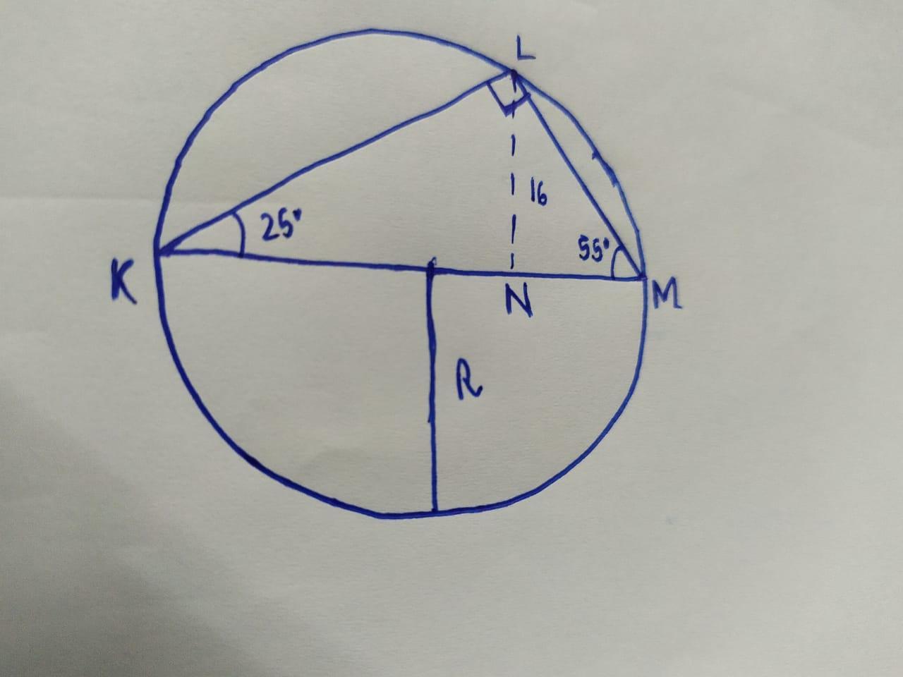 The value of KM is 2R because as the ∠KLM forms an angle of 90°, therefore, the line KM passes through the center.