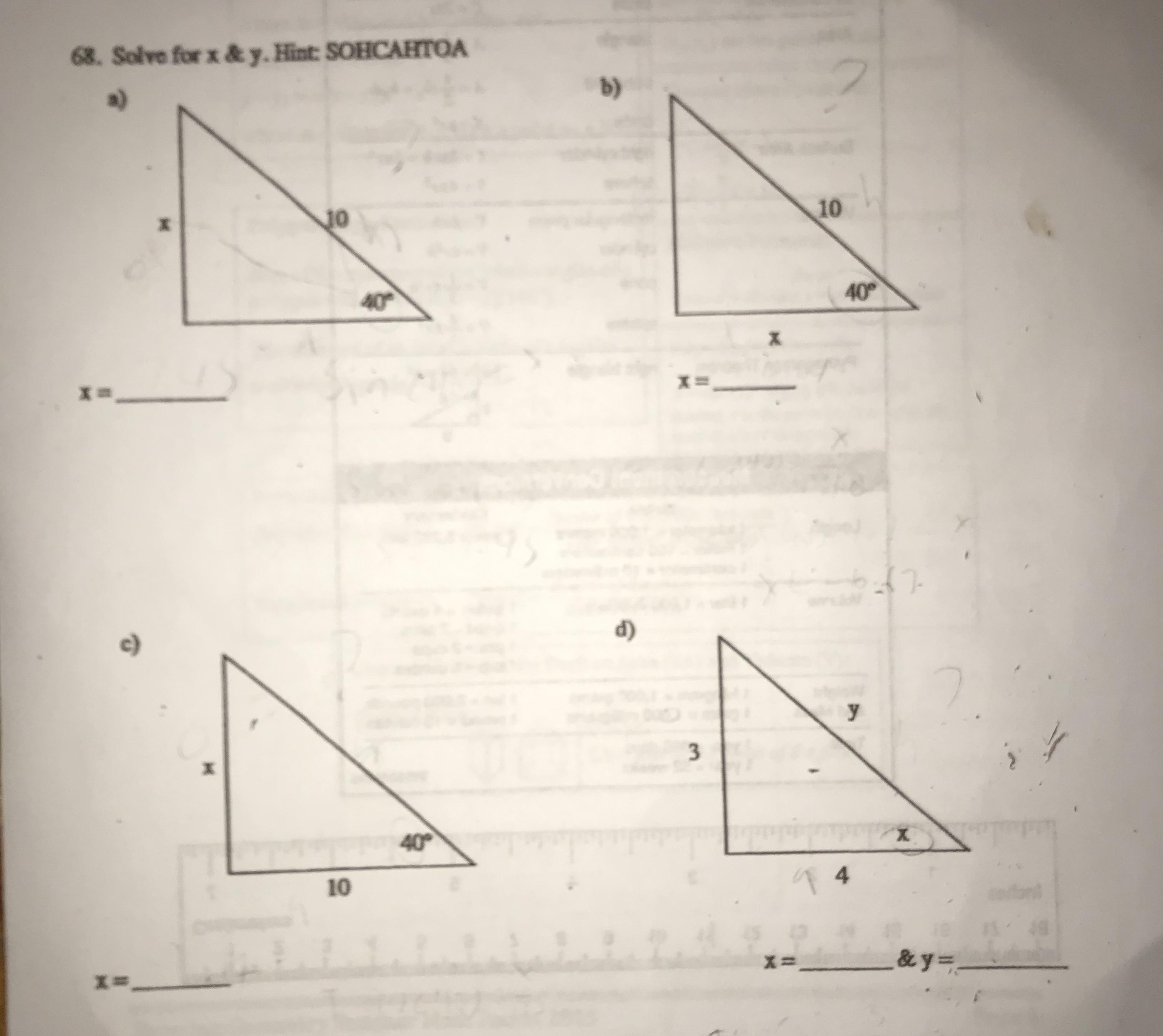 I'm going to first assume that all of these are right triangles.