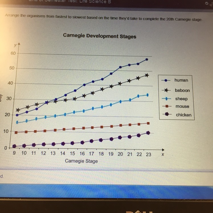 (Chicken, mouse, sheep, baboon, human) Is the right answer.