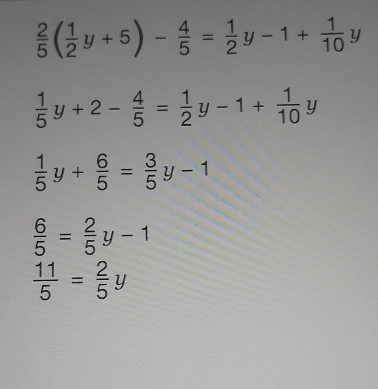 You have it all but solved. Now, multiply both sides of the equation by 5/2, the inverse of the coefficient of y.