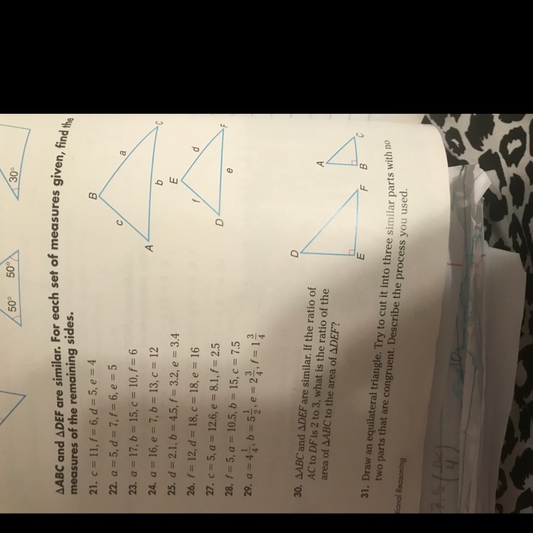 Triangles ABC and DEF are similar, which means corresponding sides occur in ratios with one another. Mathematically, this means
