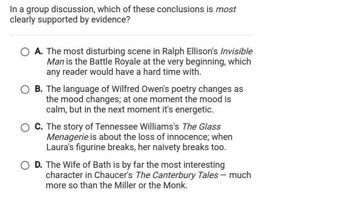 The answers are A, A, D, C, and B