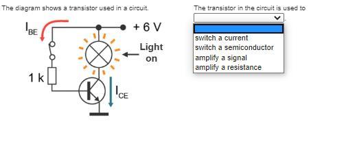 It's kind of mystifying WHY all of this technological complexity is necessary. There's already a switch in the circuit ... (the two little circles above the 1K resistor in the base circuit with the tilted line between them). That switch could just as well be used, in place of the transistor, to directly switch the current through the light. Why use one switch to control a transistor to make it behave like another switch ? ?