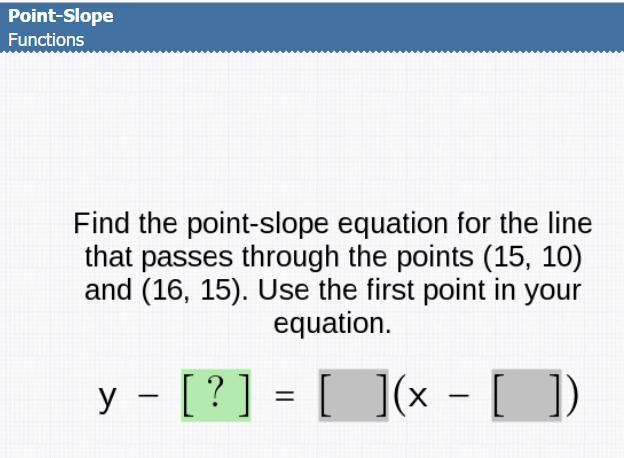 with (x₁, y₁ ) = (15, 10) and (x₂, y₂ ) = (16, 15)