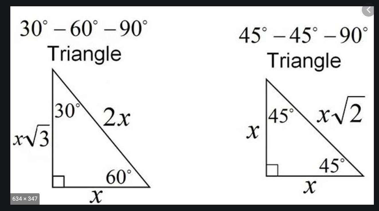 This is an example of a combined 45 45 90 triangle and a 60 30 90 triangle. I have put the pictures showing the side lengths.