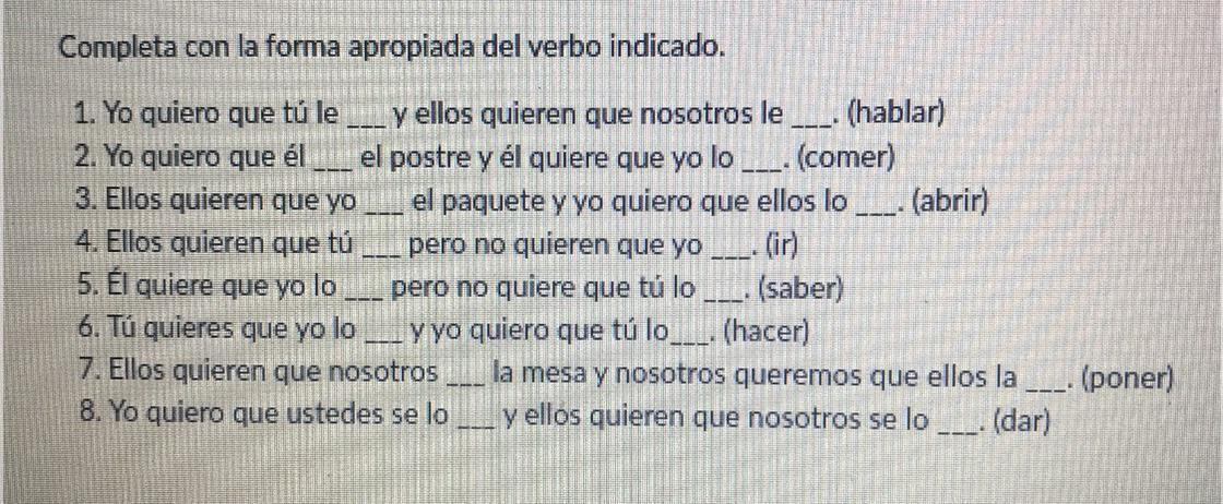 • Fill in each blank with the most appropriate form of the past subjunctive