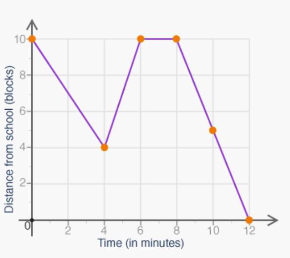 He lives 10 blocks from school. Holden walks 6 blocks in 4 minutes, but then realizes that he forgot his jersey. He runs back home in 2 minutes and spends 2 minutes finding his jersey at home. Finally, he runs 5 blocks every 2 minutes until he reaches school. And a good example/photo would be: (down below)