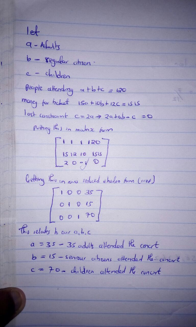 b = 15, meaning 15 senior citizens attended the concert