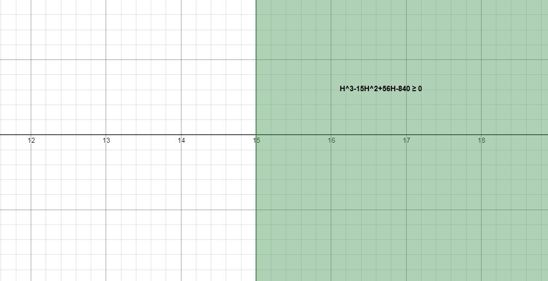 Since, the minimum volume of the rectangular tank should be 840 cubic feet i.e. Volume ≥ 840.