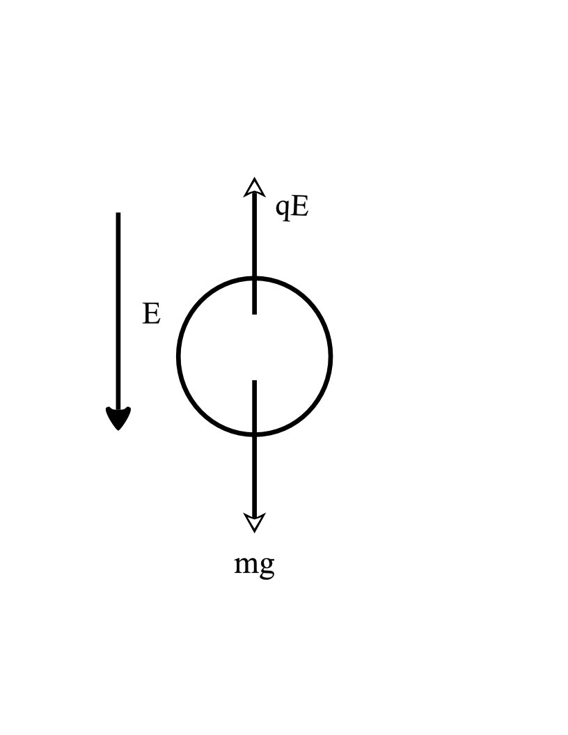 The bead has a mass m and its weight mg is directed downwards. The bead can be balanced in an electric field of strength E if the force it experiences due to the electric field is directed upwards and is equal to the magnitude of its weight. This is shown in the diagram attached.