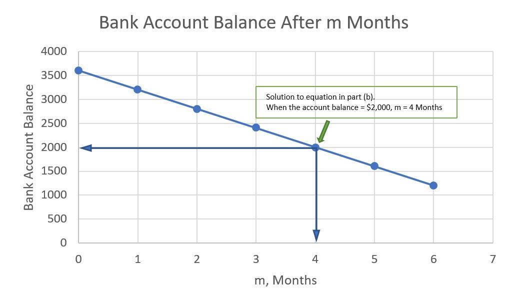 $400 × m = The amount removed from the account after t months such that the final account balance of the bank checking account is $2,000