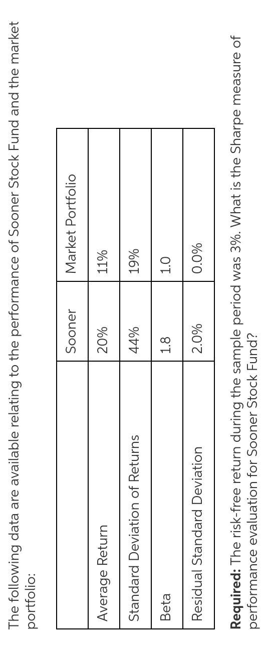 The risk-free return during the sample period was 3%. What is the Sharpe measure of performance evaluation for Sooner Stock Fund