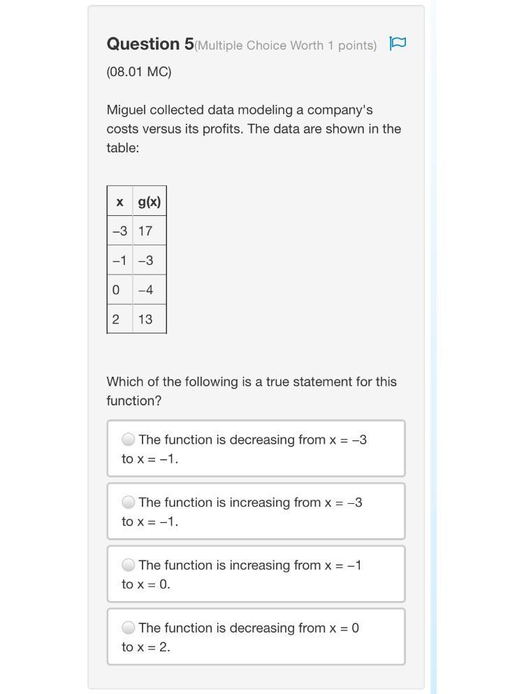 When looking at the first answer choice, we can definitely see that the function value ( g(x) ) is decreasing from x = -3 to x = -1.