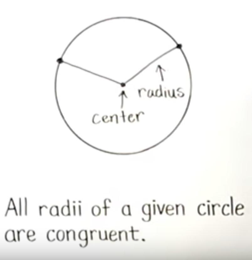 Whichever point on the circle we choose, the distance to the center of the circle will always be the same so we can say that all radii of a given circle are congruent.