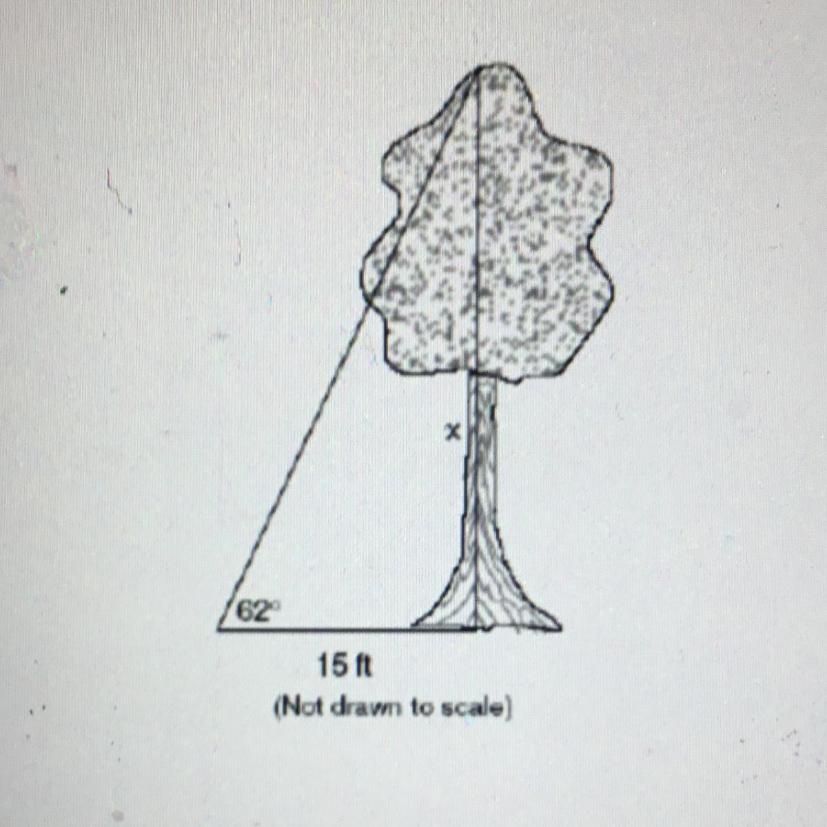 Find , to the nearest tenth of a foot , the height of the tree represented in the accompanying diagram.
