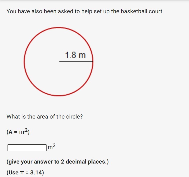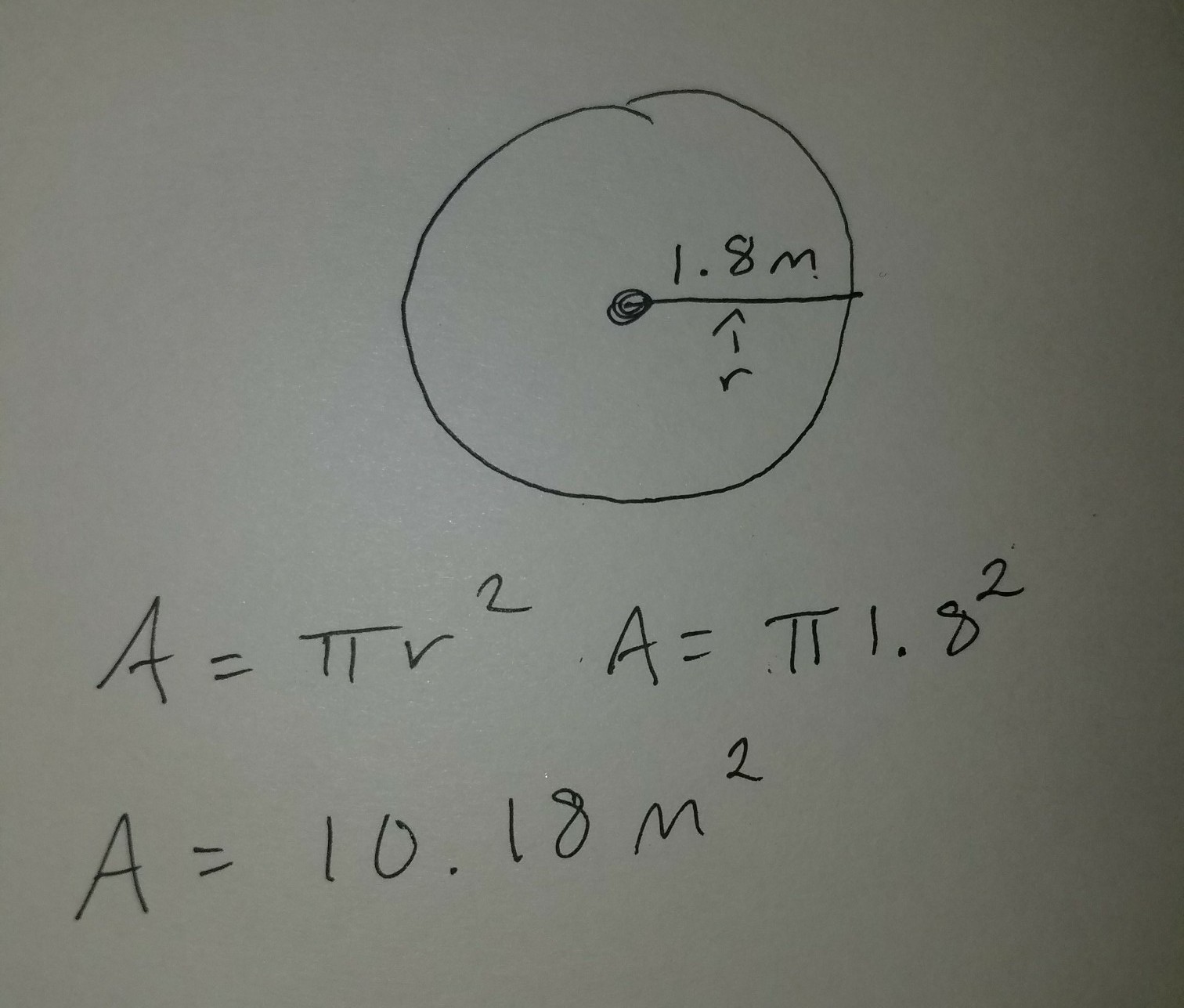 so, just plug in the radius (1.8 m) to the equation, and type it into a calculator.