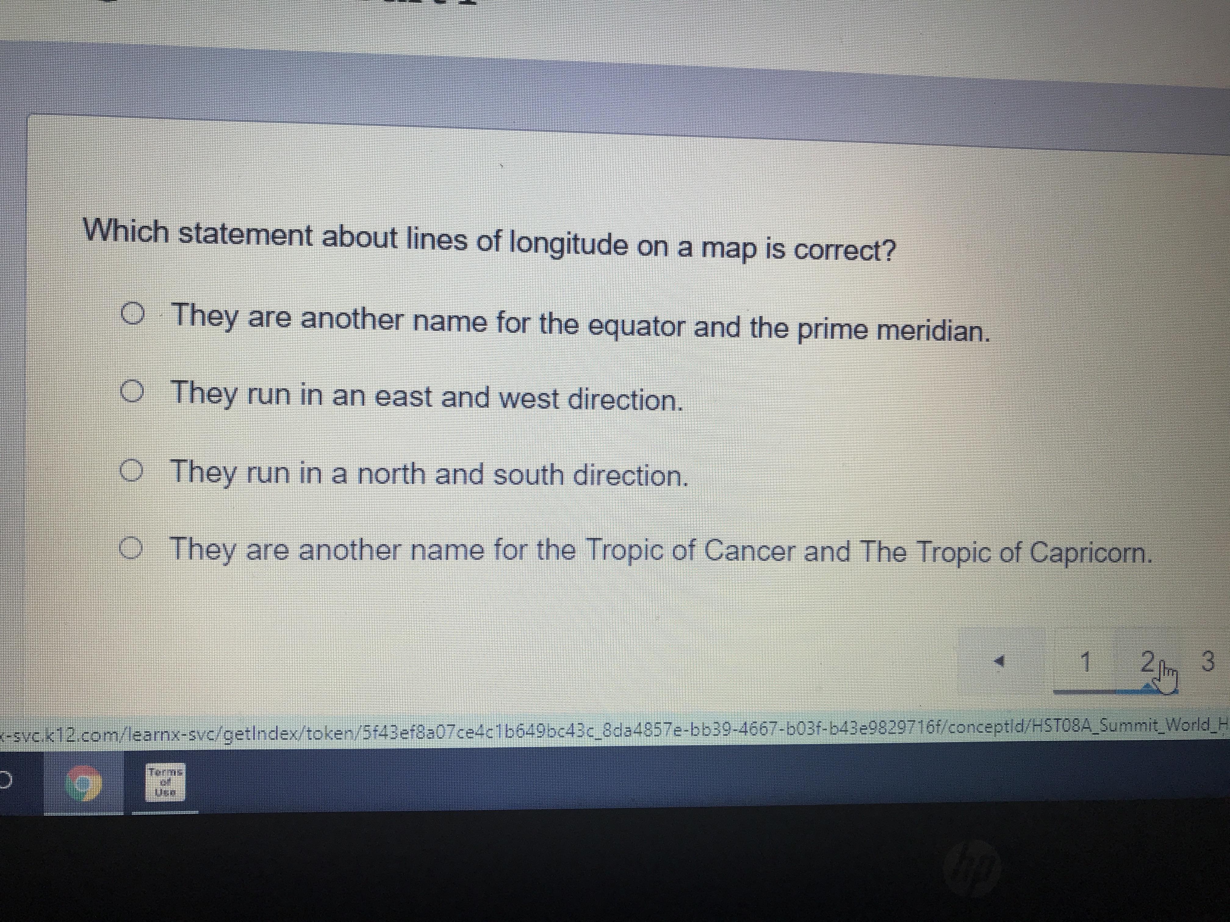 Which statement about lines of longitude on a map is correct? A. They are another name for the equator and the prime meridian. B