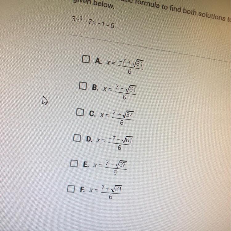 Use the quadratic formula to find both solutions to the quadratic equation
