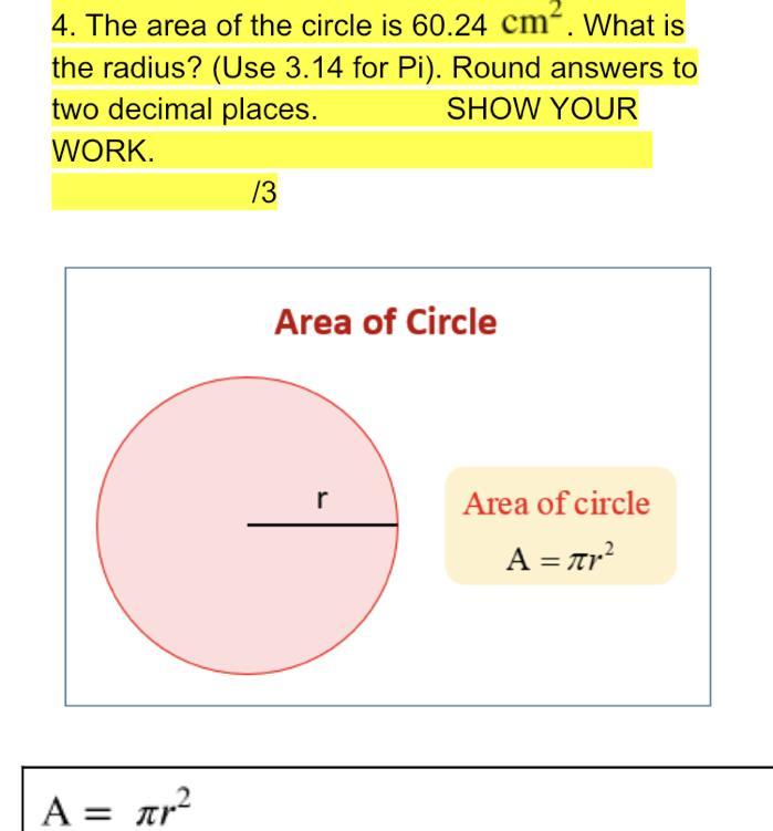 Find the radius by working backwards using the equation A = πr²: