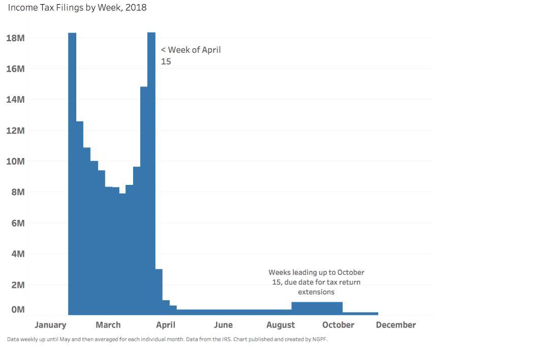 2. The approximate number of people who filed their returns the first week of February and the week of April 15, combined=21 M