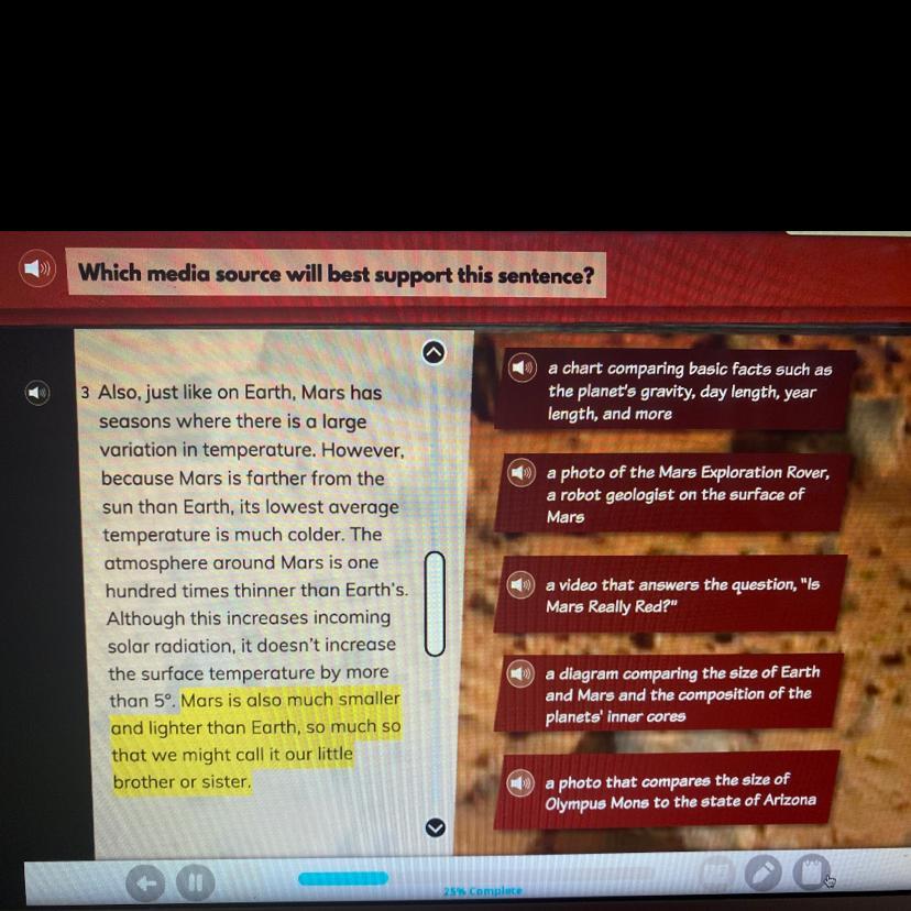 The second option states a photo of Mars, now this option has nothing about Earth cross it off.