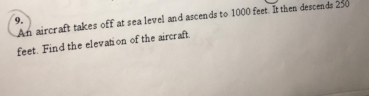 If we go up 1000 feet from sea level and then come down 250 from that, then we are being asked to compute the difference of 1000 and 250.