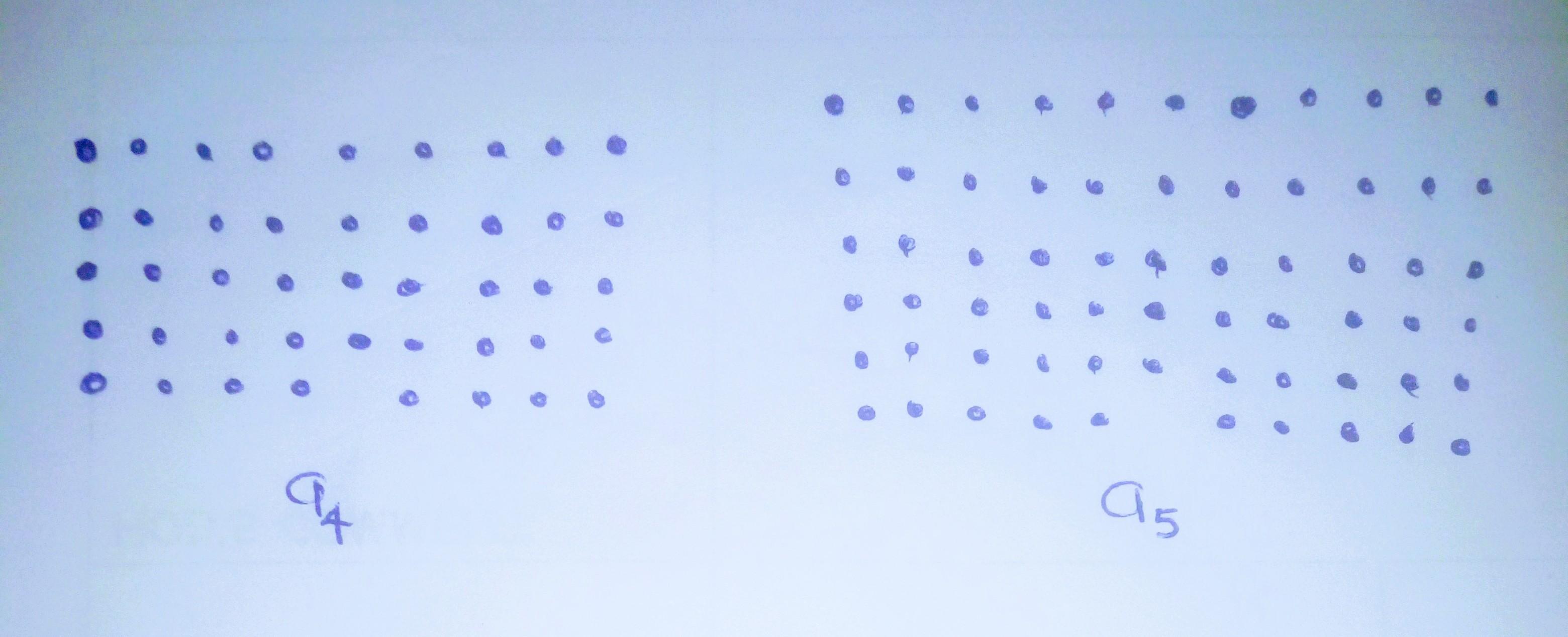The labelled alphabet, tells you the number of columns and Number of dots in the middle.
