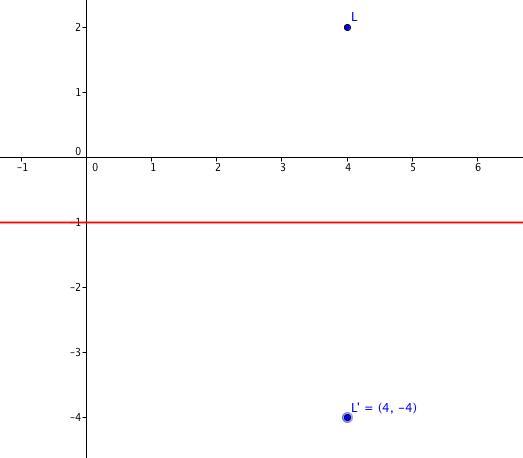 What are the coordinates of the image of point L(4, 2) after a reflection over the line y = –1?