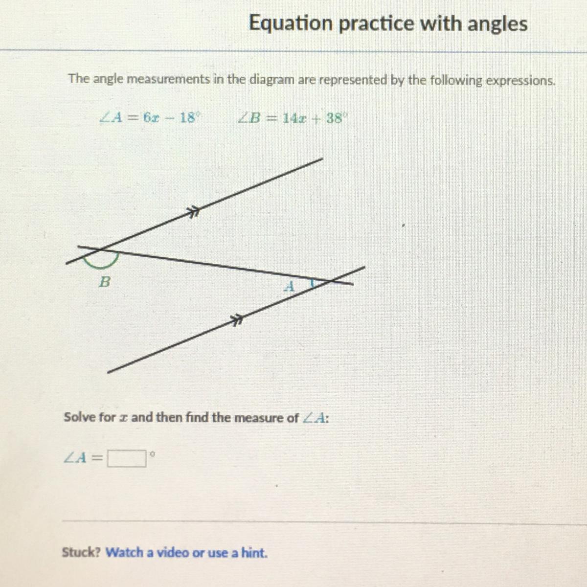 /A = 6x-18 = 6×8-18 = 30°