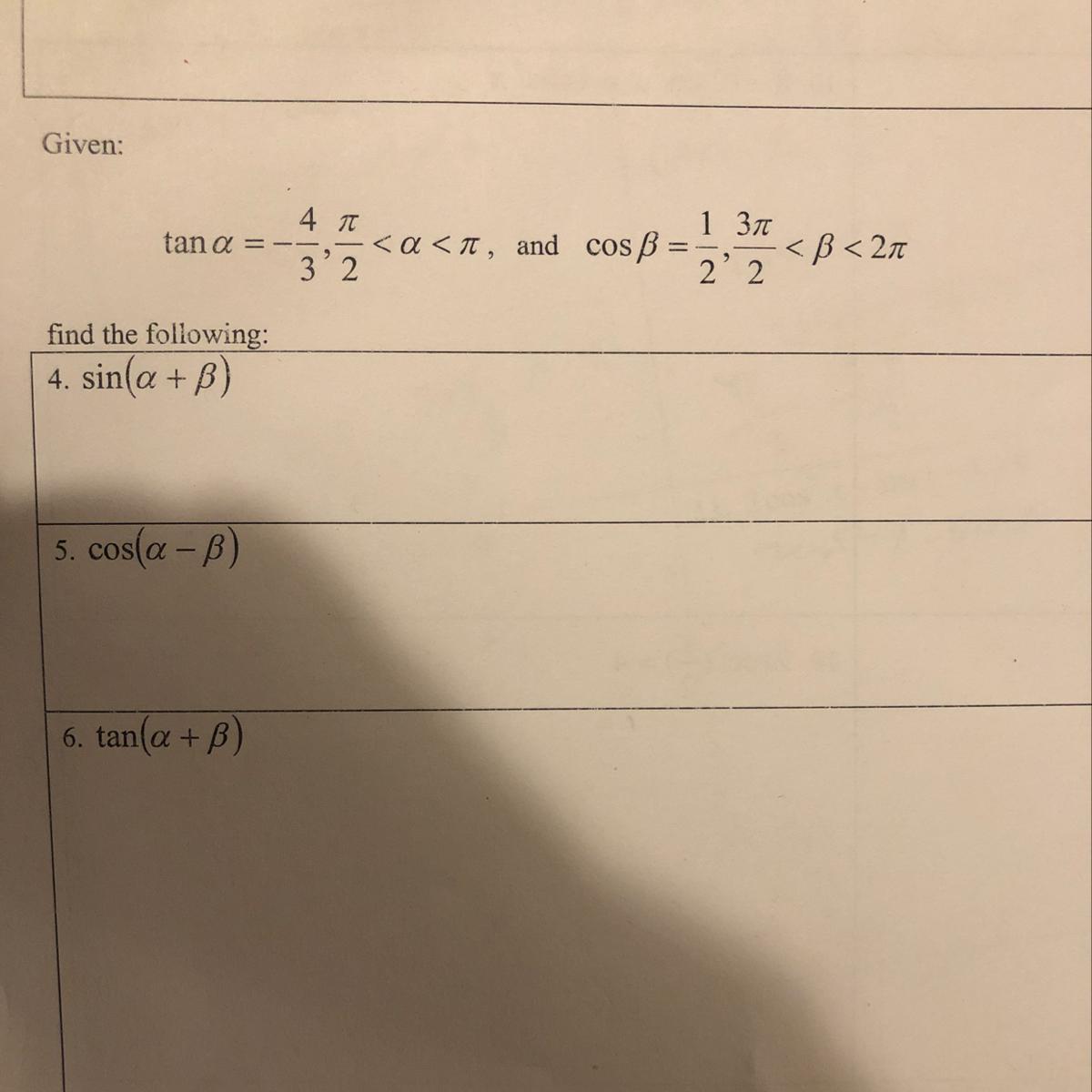 6. tan(α+β)