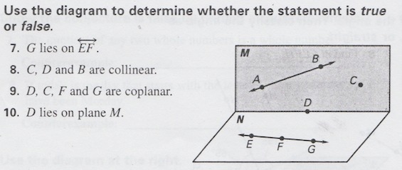 Since, we can observe that point M lies on the plane M and N . Since, our statement says that D lies on plane M which is true.