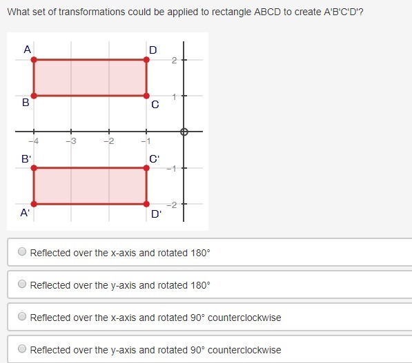 <em>Your answer is</em> Reflected over the x axis and rotated 180°