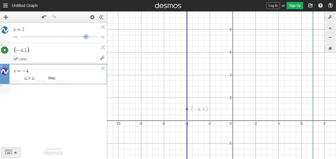 Question 5: What is the equation of the line parallel to x = 7, passing through the point (-4, 1)?