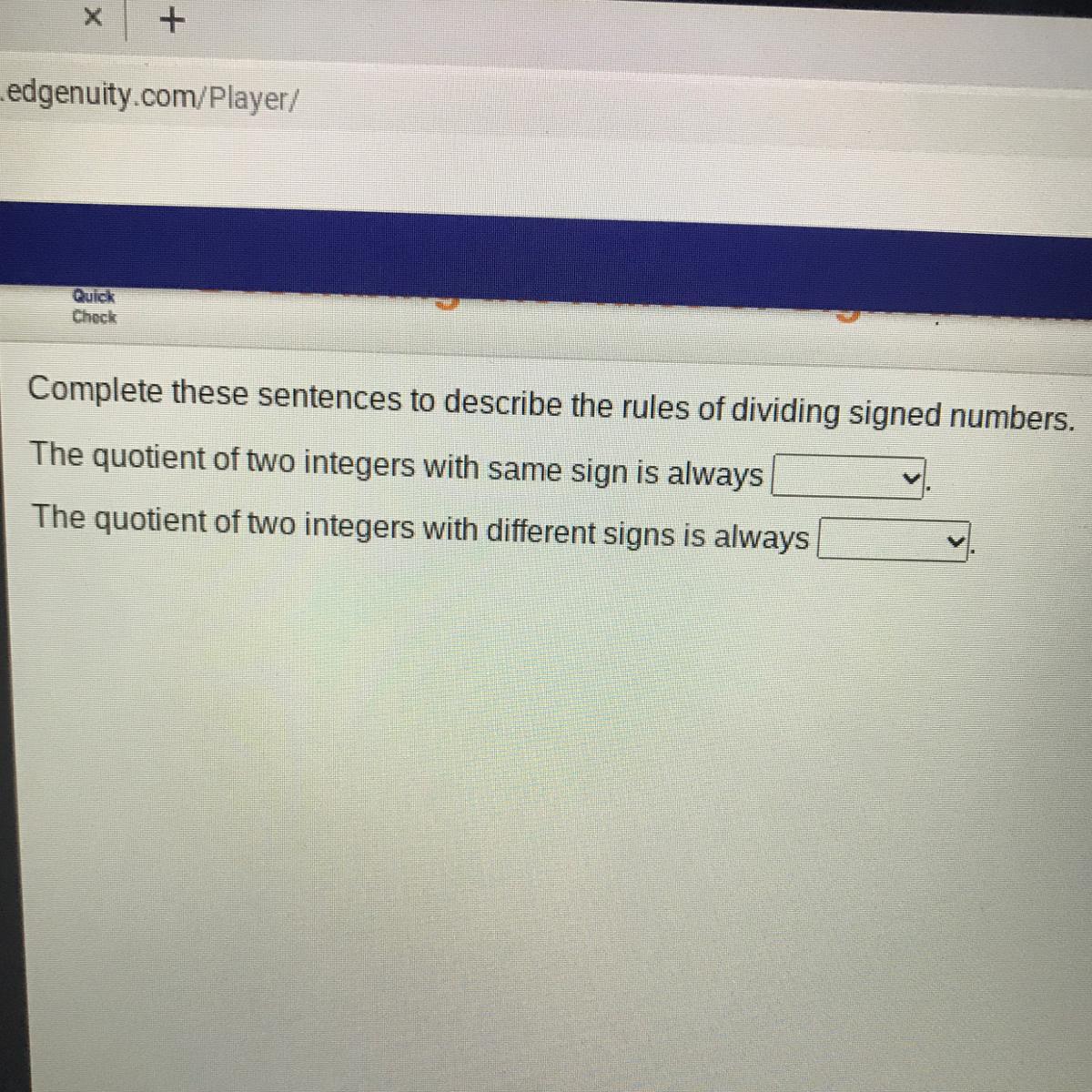 then, to figure out the sign of the quotient, you just thought about whether that scenario would be a bad thing or a good thing.