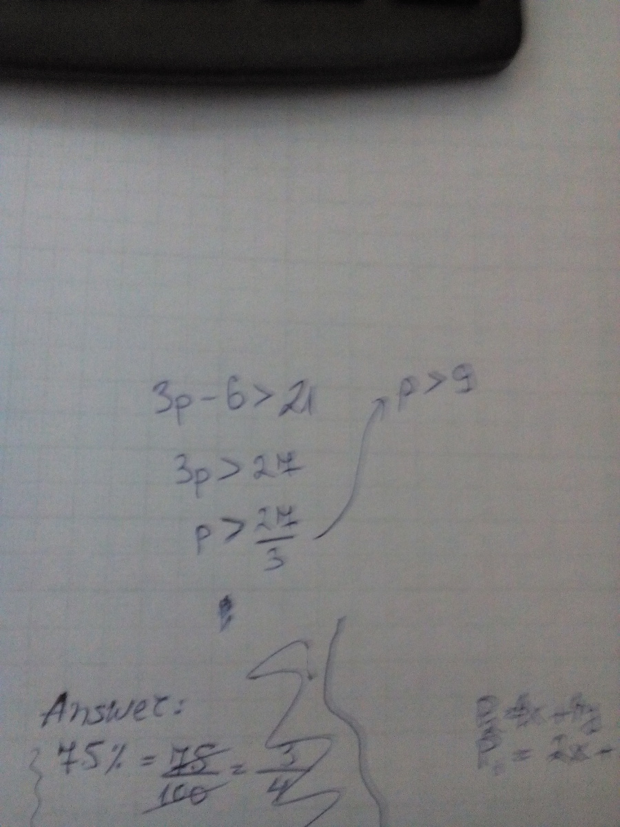 3p - 6 > 21
