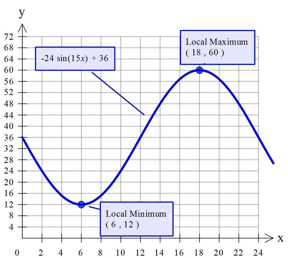 The equation of is ⇒ <u>f(m) = -24 sin (15m) + 36</u>