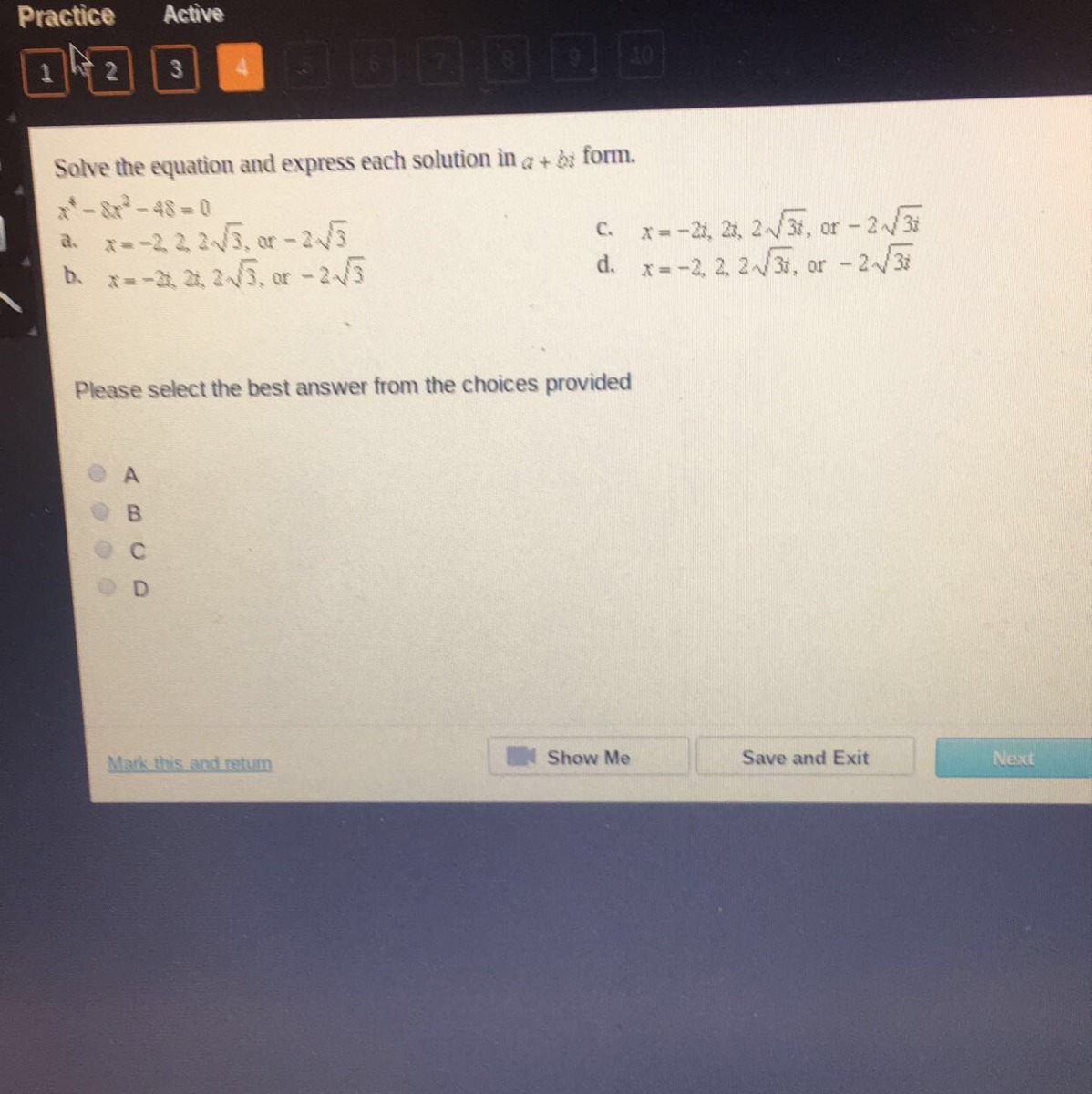 Another approach is the diagonals have created 4 triangles where the base and is height is either 4 units long or 8 units long so the area of the rhombus would be the area of the 4 triangles.